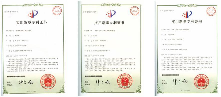 ◆废气处理专利:废气、废液经专用的废气壶,废液壶收集不污染空气,专利名称:一种抽真空脱水机废气处理装置,专利号:ZL2015 2 0700314.2
